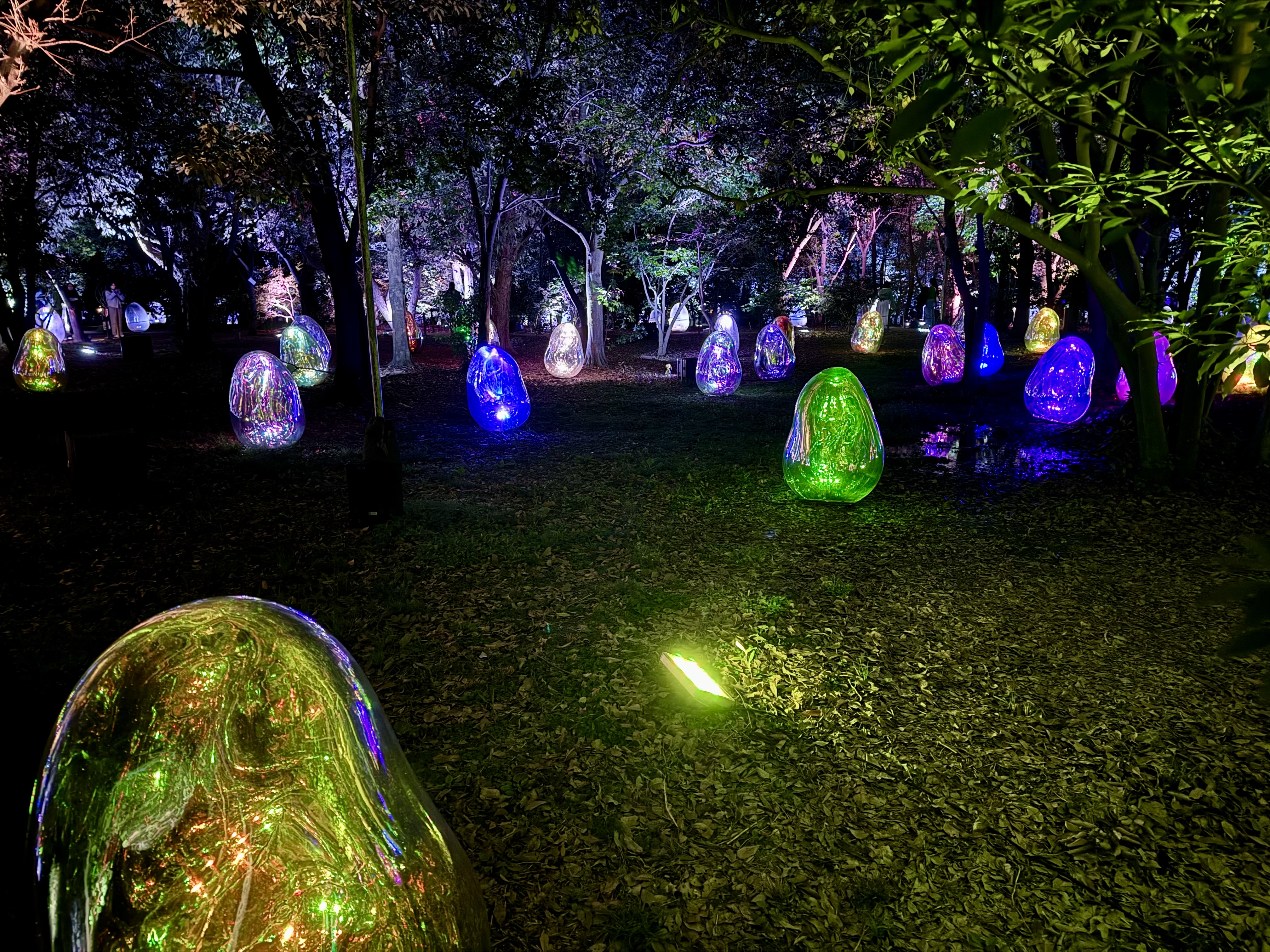 End your day with the teamLabs Botanical Gardens Experience. An interactive art piece set up in Osaka’s Nagai Park. The experience starts after sunset and dazzles with many different light pieces that are interact with people, nature, and sound.