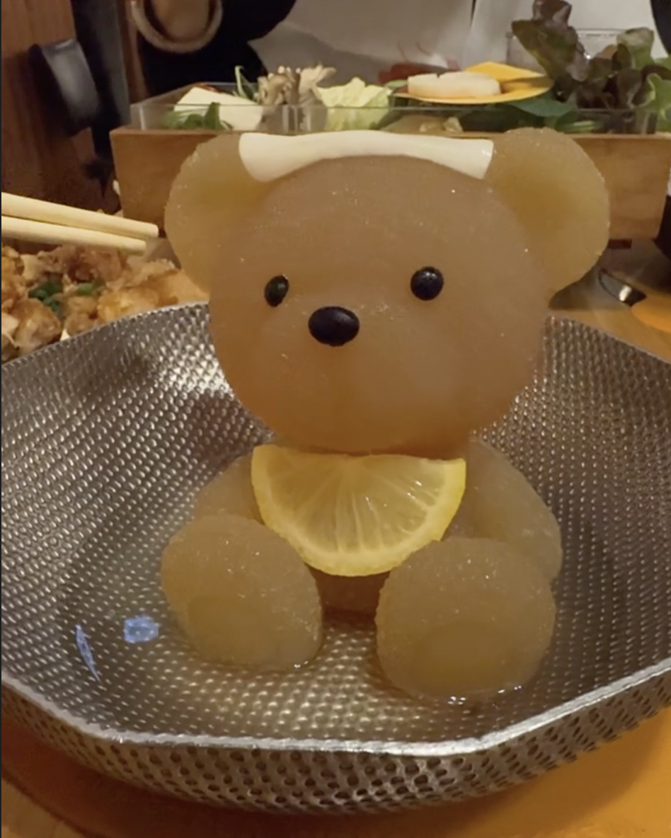 For Dinner get a reservation at the viral Kumachan Onsen. This adorable bear themed restaurant serves delicious Japanese hot pot.